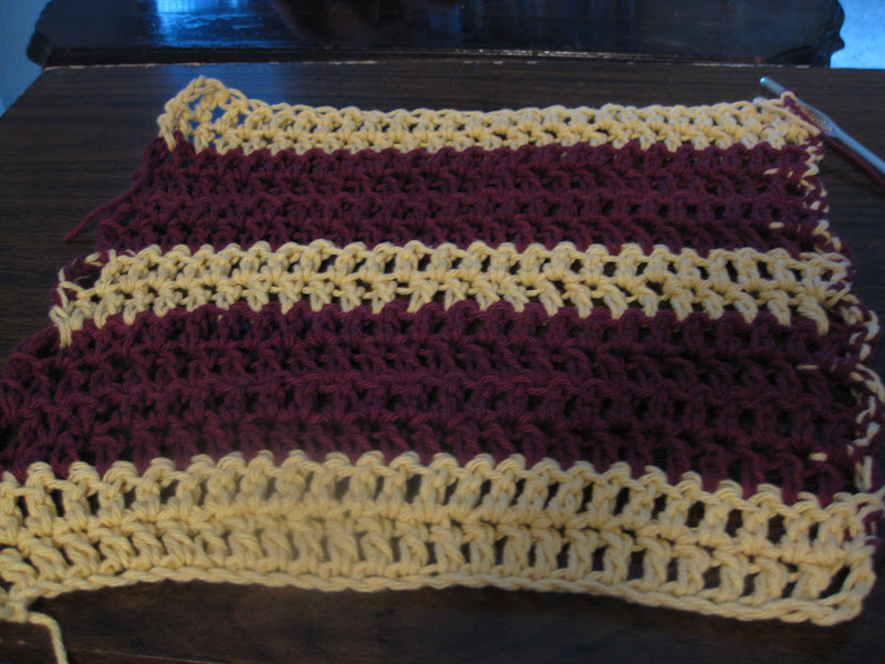 I made this using Sugar and Cream Country Yellow and Wine with a J hook.